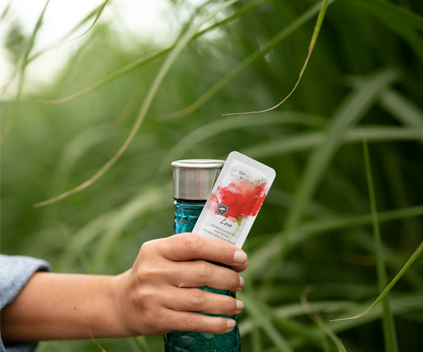 Disfrutar del agua consciente es tan fácil como contar hasta tres. Primero, doblas la porción individual por la mitad. Luego, exprimes el contenido en 250 ml o más de agua fresca (según tu preferencia de sabor). Luego, revuelves rápidamente, respiras profundamente y bebes sorbos intencionalmente. Está diseñado para que sea fácil, para que puedas beber de manera consciente en casa y mientras viajas.